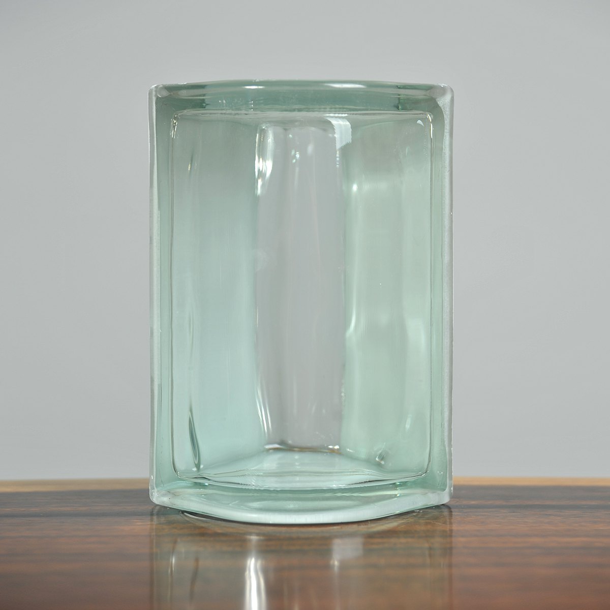 將兩塊凹形半塊玻璃磚坯的側(cè)壁嵌入截面為H形的熱塑型塑料環(huán)形件的槽內(nèi),借助密封材料,在溫度和擠壓的作用下使型件表面軟化,進(jìn)而將兩個(gè)凹形半塊玻璃磚坯牢固第粘結(jié)在一起,形成整體空心玻璃磚。